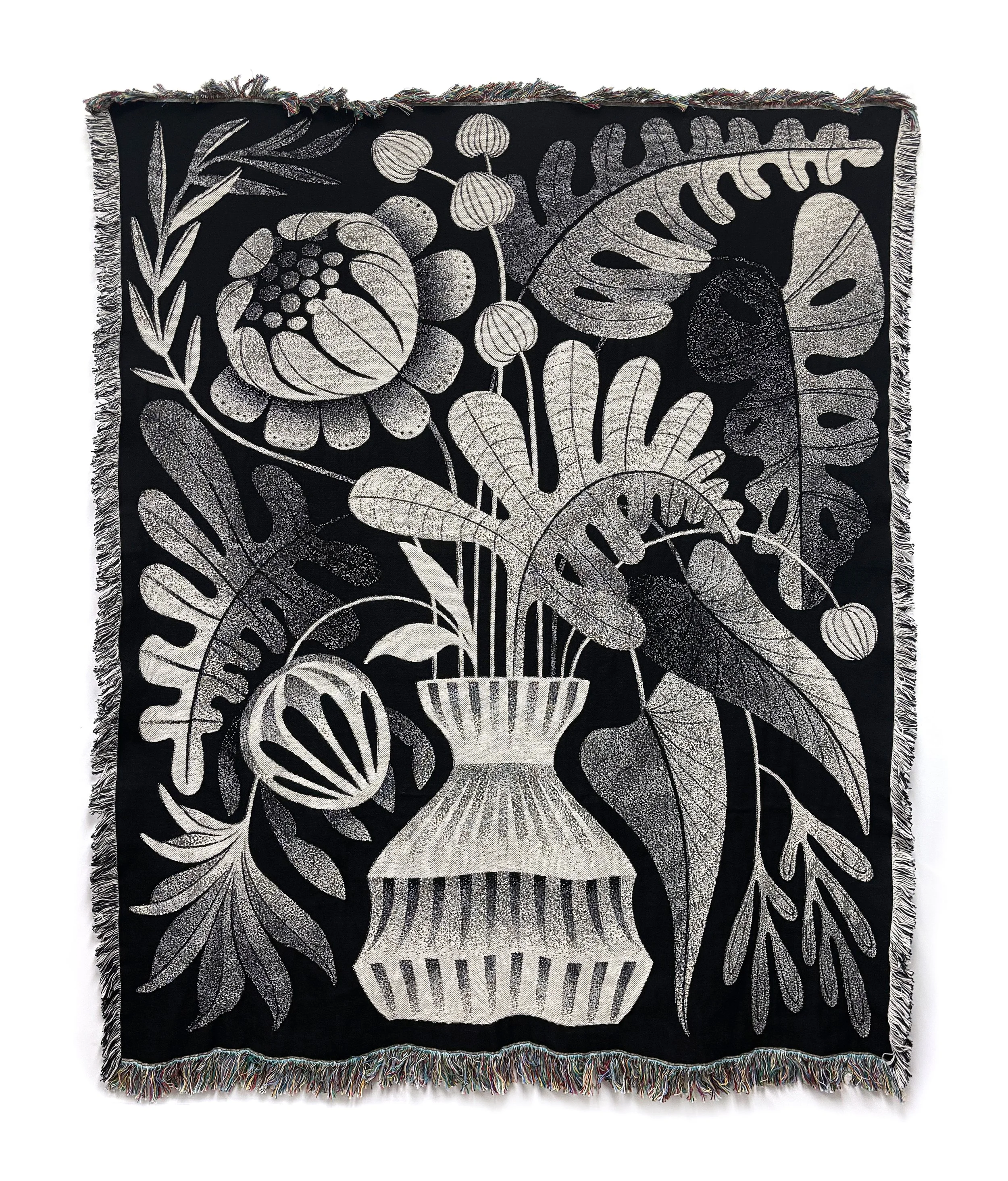 This blanket brings Community, one of my most personal illustrations, into a tactile and functional form. Woven on state-of-the-art Jacquard looms, each blanket is crafted from over 8 miles of 100% natural cotton thread, creating a rich, detailed translation of the artwork’s shapes, textures, and rhythm.